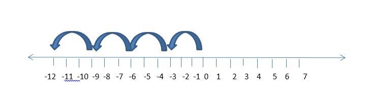 So, when we move from 0 , when we take first step we reach -3 , in next step we reach -6 , in next we reach -9 and in the last step we reach -12
