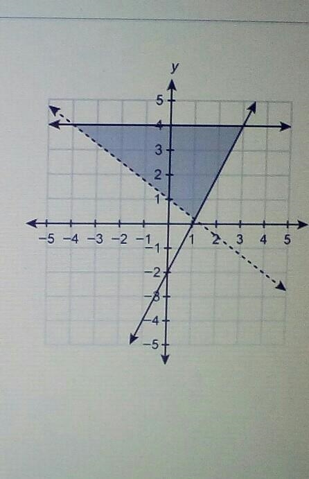 The solution of the third inequality is the shaded area above the dashed line that pass through the points (0,1) and (-4,4)