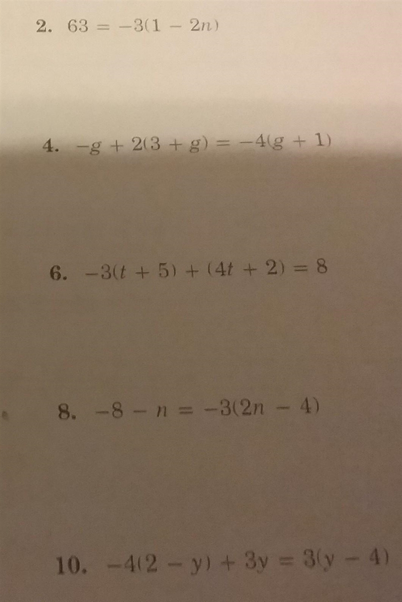 10. -4( 2 - y) + 3y = 3(y - 4)