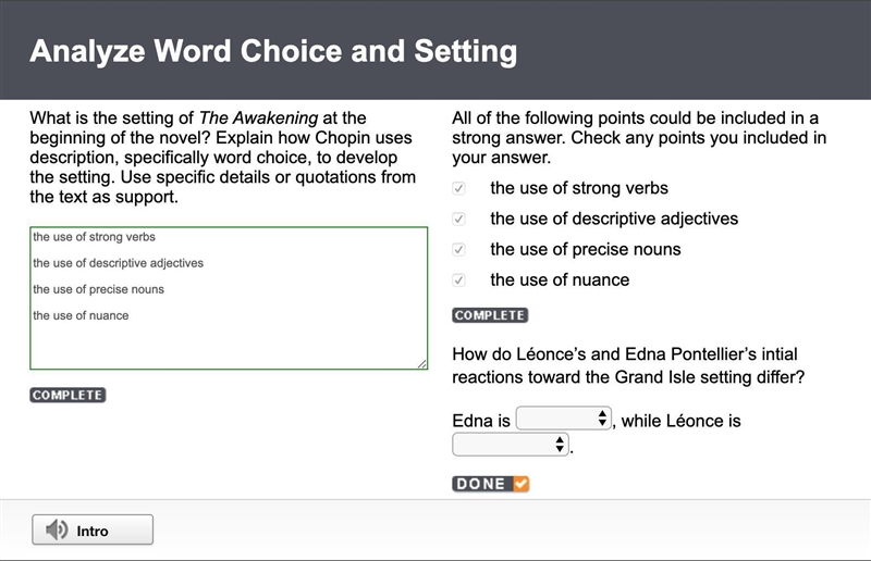 The characters' portraits are sketched in Chapters I and II already and we quickly realize that Edna is playful, being described as "engaging" and interested in outdoor activities, while Leonce, her husband, seems to be bored, "serious", not so much into life at the beach or swimming. He is engrossed in reading the newspaper, smoking, thinking things to himself and treating his wife as his property.