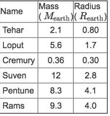 However, the table related to this question is attached, where it is shown the mass and radius of each planet expressed in terms of Earth's mass