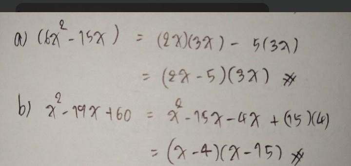 1. Factor completely. a) 6x²-15x b) x²-19x+60 c) 2x²-15x-27