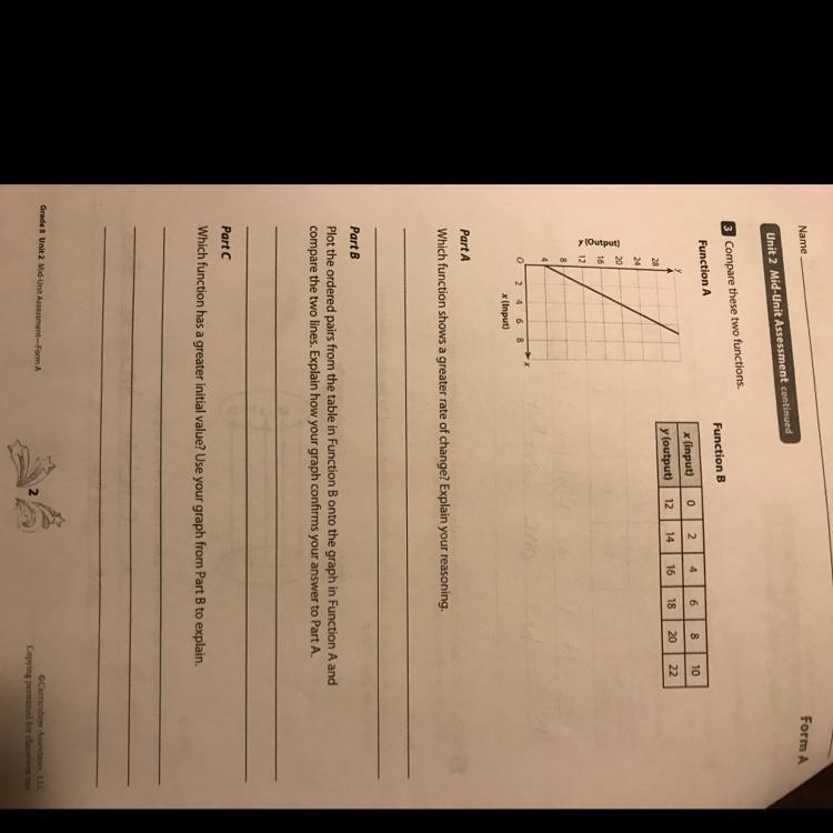 Here, Function A show graph of a line and Function show table show a set of value of x and y.