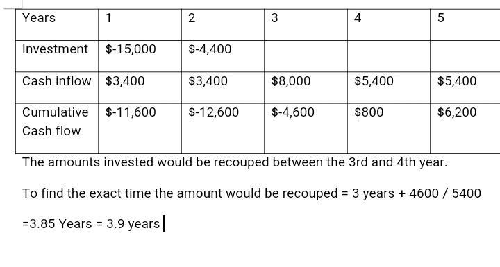 The payback period measures how long it takes for the amounts invested to be recouped from the cumulative cash inflows.