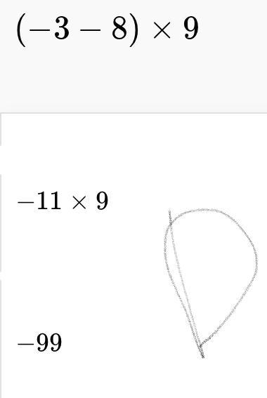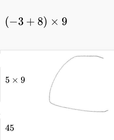 (9) • (-3 + 8) A. (9) • (-3) + (9) •8 O B. (9:-3) + 8 O C. (-3+8) • (9) D. -(3-8). (9)-example-5