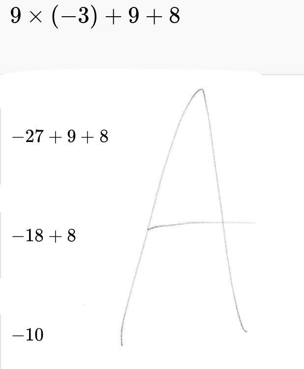 (9) • (-3 + 8) A. (9) • (-3) + (9) •8 O B. (9:-3) + 8 O C. (-3+8) • (9) D. -(3-8). (9)-example-3