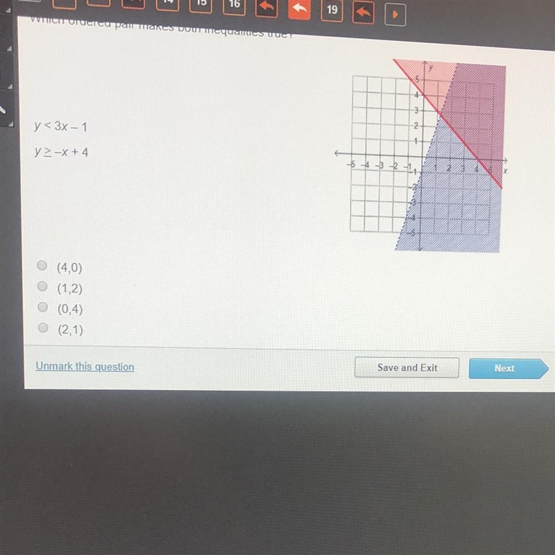 Plug in the x,y coordínate pair and see if the inequality is true, both equations must render true