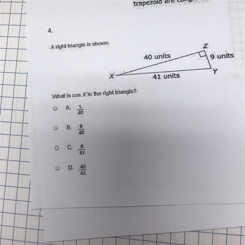 Hence Cos X = 40/41 .