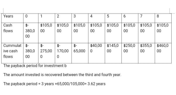 Explanations on how the payback periods were calculated can be found in the attached images.