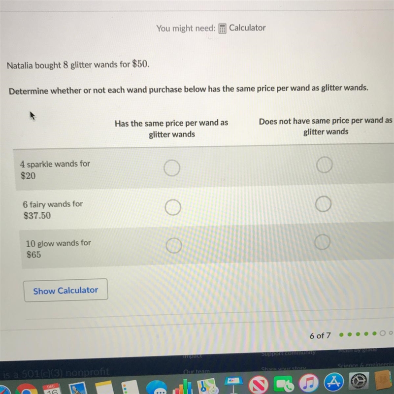 8 divided by 50 equals the answer per wand costs, which is 0.16 cents.