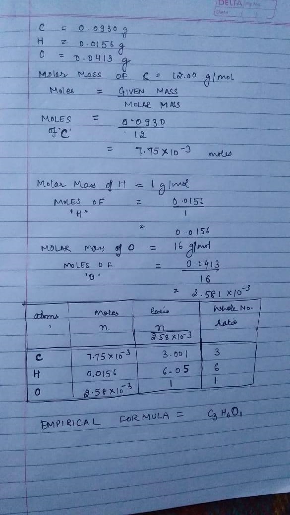 1. Calculate the number of moles of C,H and O
