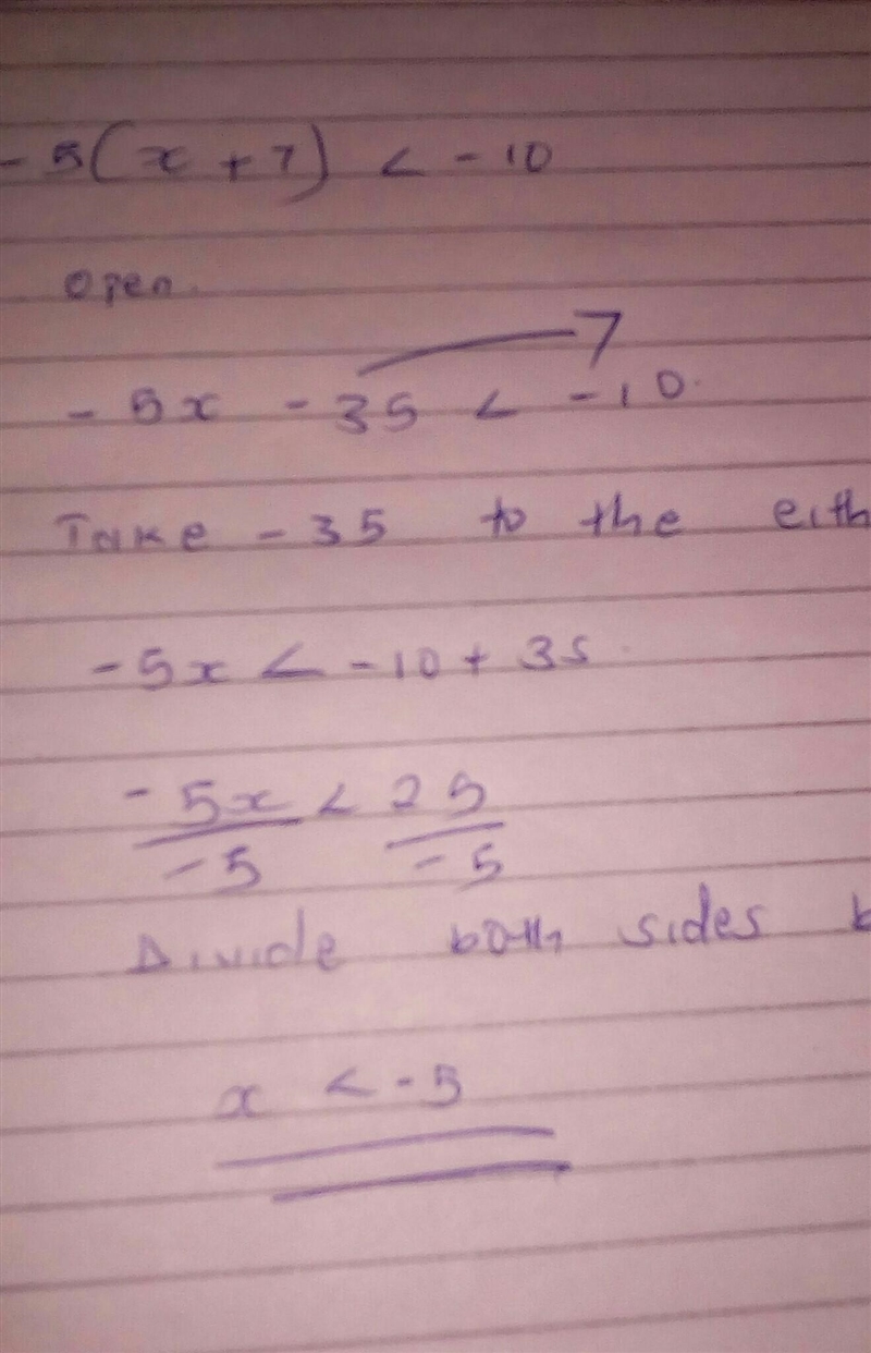 where it turns to be -5X<-10+35