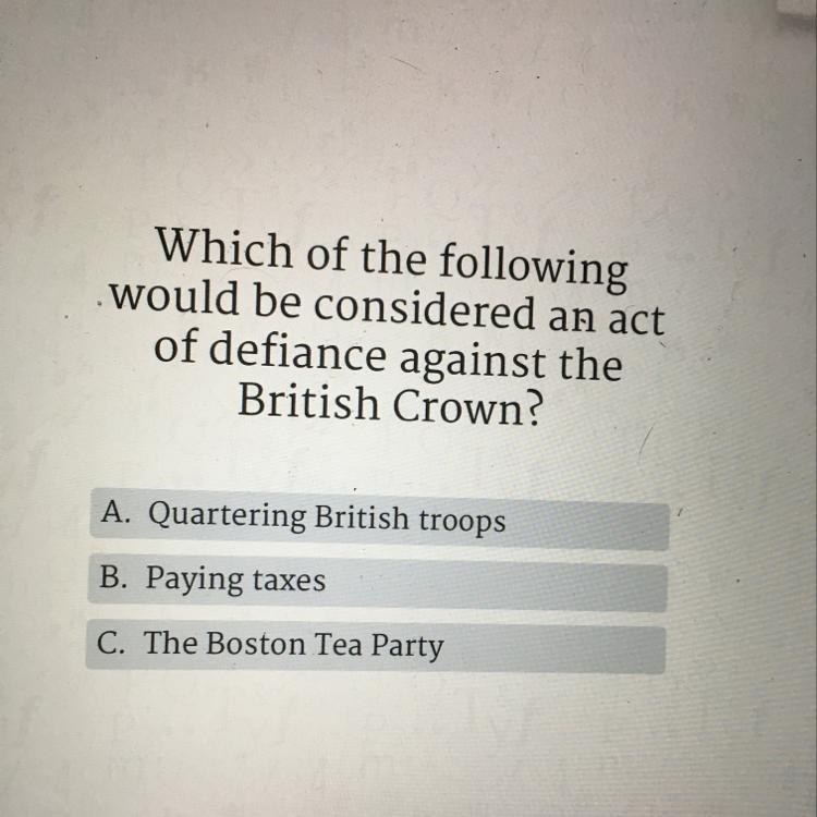 The Boston Tea Party was dumping tea into the water, defying the British's taxes on tea, paper, sugar, etc.