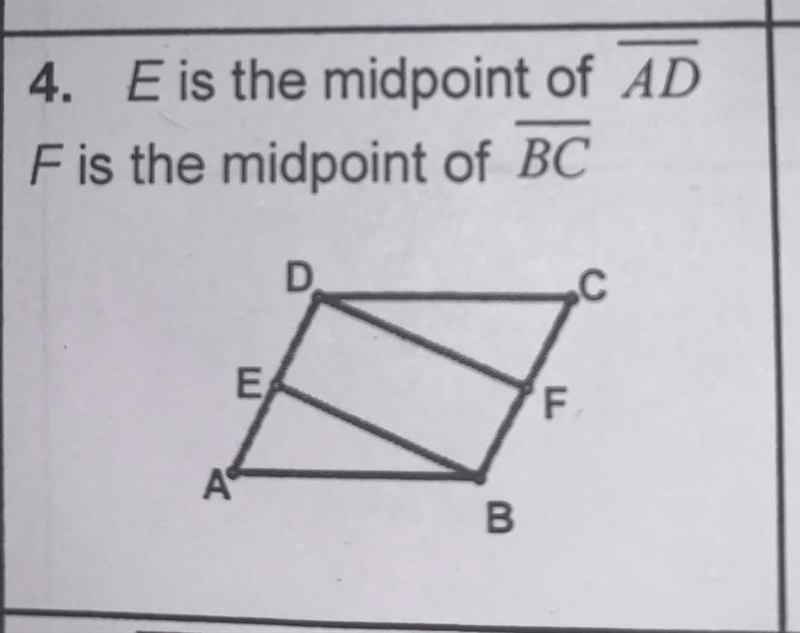 As ABCD is a parallelogram opposite sides are equal s AE ≅CF ,also AB≅ DC . Both E and F bisect the opposite lines in equal halves.