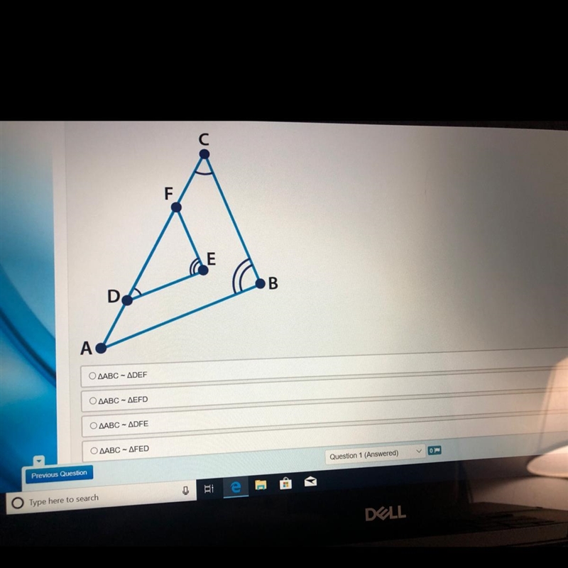 Now, we know that the triangle is going to start with F, meaning we can cross out the first 3 options from our list and make option 4 our answer.