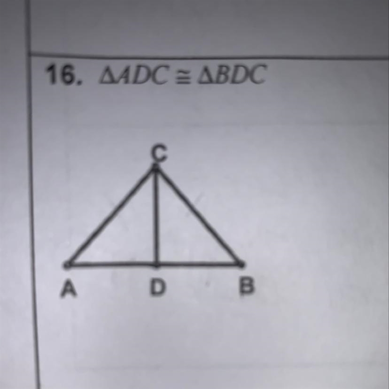 Triangle ADC is congruent to Triangle BDC (image is provided)