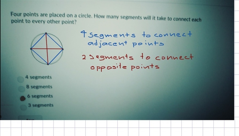 You will need 4 segments to connect adjacent points, and another additional two segments to connect opposite points.