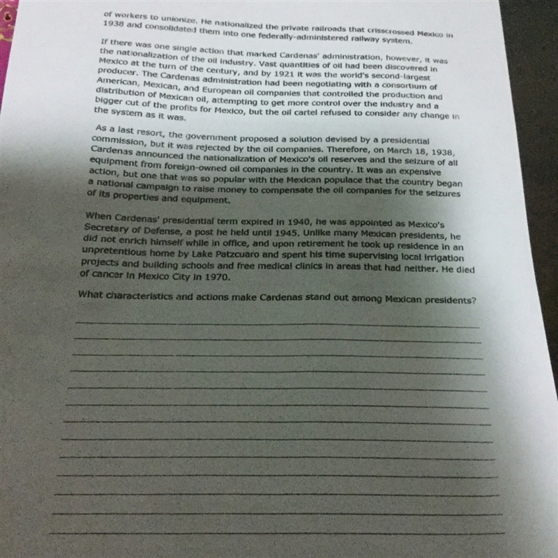 Lazaro Cardenas was considered as the perfect politician. He construct his approaches in light of a reformist venture propelled by communist thoughts profiting well being, the individuals, arrive dissemination, framework and farming, what's more nationalizing all U.S. what's more, U.K. oil organizations, he likewise tried unique things with a specialist controlled railroad and arranged a communist training framework.