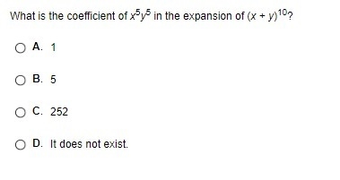 What is the coefficient of x^5y^5 in the expansion of (x+y)^10-example-1