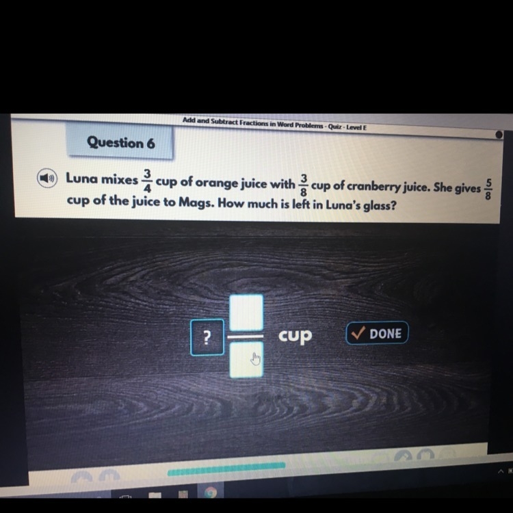 4/8 is left in her glass.
