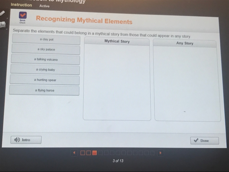 Separate the elements that could belong in a mythical story from those that could appear in any story
