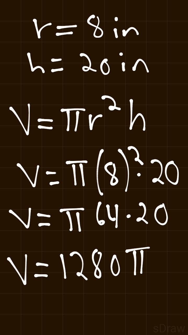 the outside diameter of a metal pipe is 16 in. the inside diameter of the pipe is 10 in. if the pipe is 20 in long. what is the volume of the metal needed for the pipe?