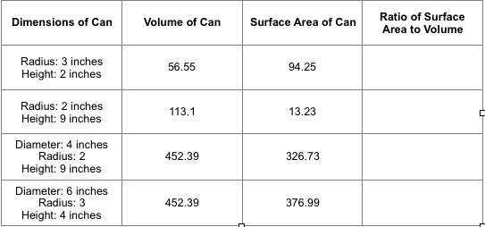 for V=452.39 and S=376.99 the ration is 376.99/452.39=0.83.