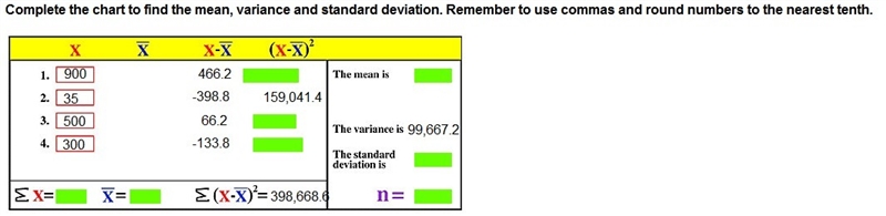 are simply the squares of the numbers in the column to its left. Round the squares to tenths. Their sum should be the value indicated in the bottom row.