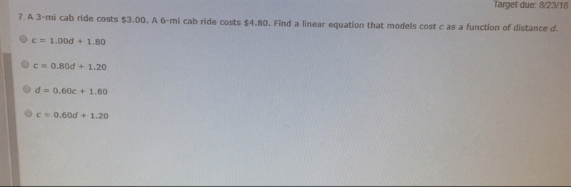 A 3-mi cab ride cost $4.80. find a linear equation that models cost c as a function of distance d.