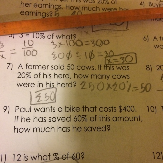 Paul has already saved $240.00 of the $400.00 he must pay for a new bike.Hope this helps!