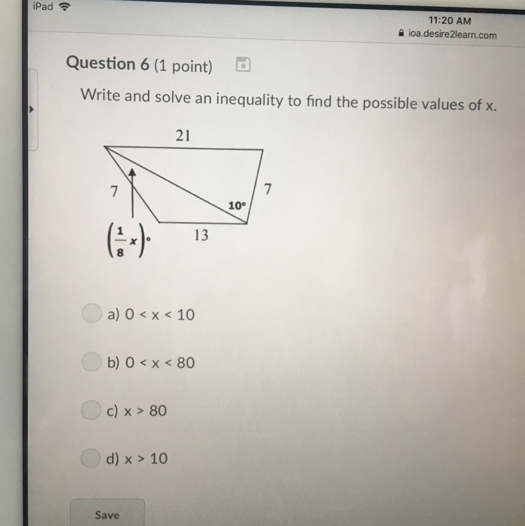 Write and solve an inequality to find the possible values of x