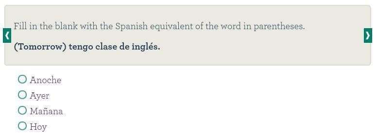 mañana is the correct answer so together the sentence would be “mañana tengo clase de inglés”