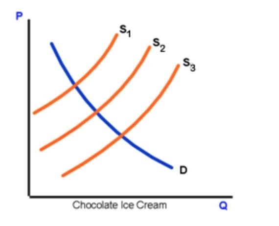 Only those two factors would cause the shift from S1 to S2. This is a shift to the right, which means that this is an increase in supply.
