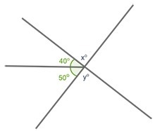 In the figure below, angle y and angle x form vertical angles. Angle x forms a straight line with the 50° angle and the 40° angle.