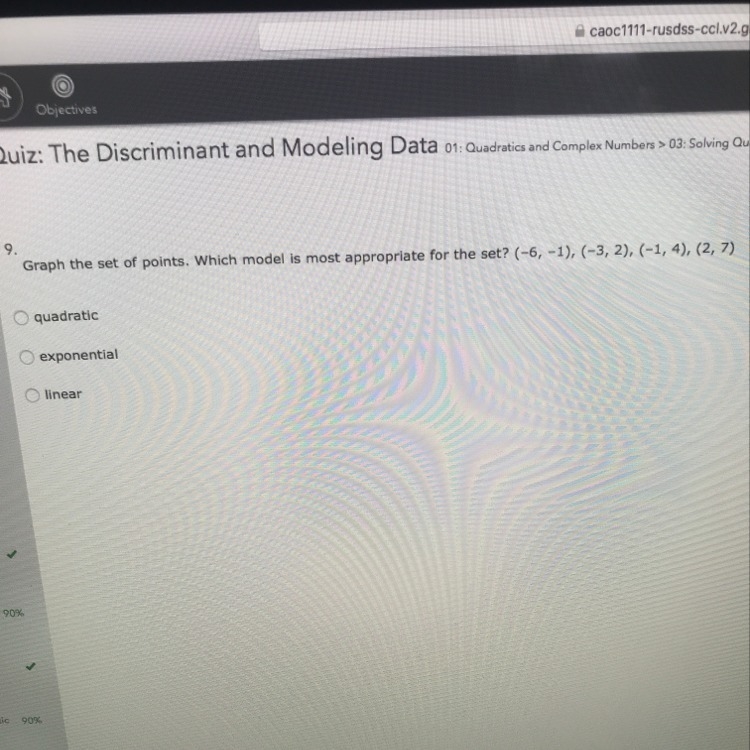 quadratic is the answer I hope it help and if I am wrong please correct me.