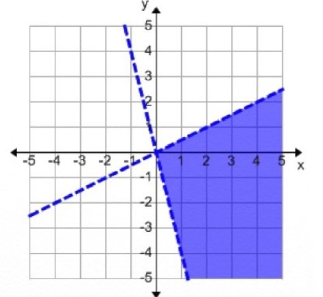 The solution to this system of inequalities has to fall within the shaded area. The only point that falls in this area is (2, 0).