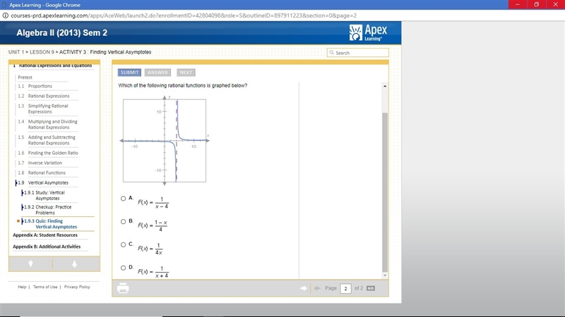 ANSWER AS FAST AS YOU CAN I'M SHORT ON TIME Which of the following rational functions is graphed below?