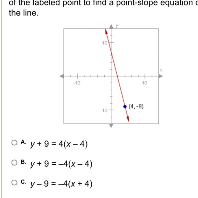 Since they already give us the slope, which is 4, and a point from the equation, which is (4, -9),