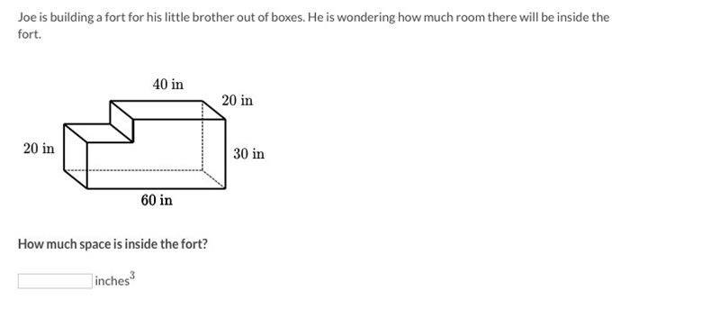 32,000, One end would be a perfect square of 20×20×20. The other would be 40×30×20.
