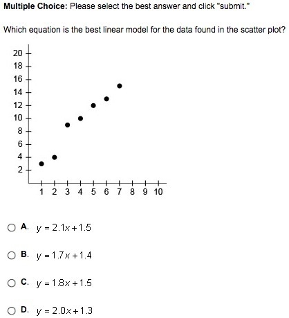 The answer is B. I got this answer by figuring out how to measure the linear equation by breaking it down.