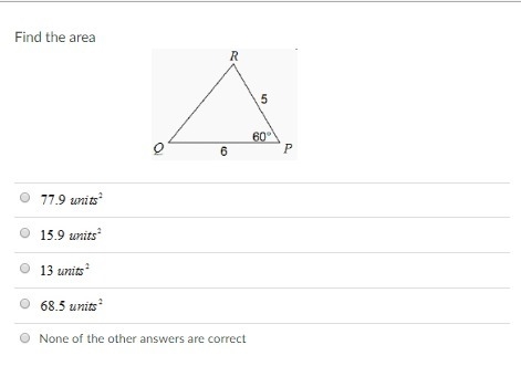 First problem: draw a line segment through the vertex R and a point C on PQ such that the segment is perpendicular to PQ, thus forming an altitude of the triangle. This new segment CR, the new segment CP, and PR form a 30-60-90 right triangle, where the measure of angle PCR is 90 degrees. CR then occurs with PR in a ratio of