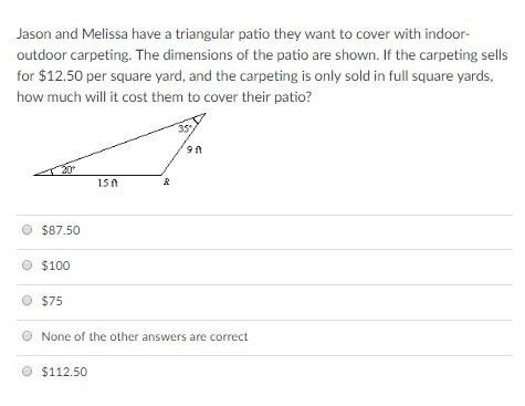 then round up to 7 square yards. At a price of $12.50 per square yard, the total price will be $87.50.