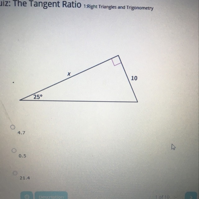 Next, divide both sides by tan(25), and your answer will be x = 21.4.