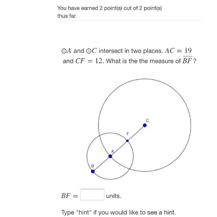 A to F = 7, because 19 - 12 = 7. B to F is the diameter of circle A, and A to F is the radius, so since diameter is two times the radius, you do 7 * 2 = 14.