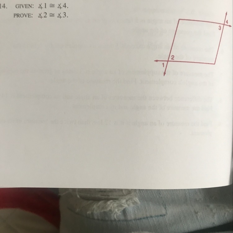 Given: angle 1 = angle 4 Prove: angle 2 = angle 3