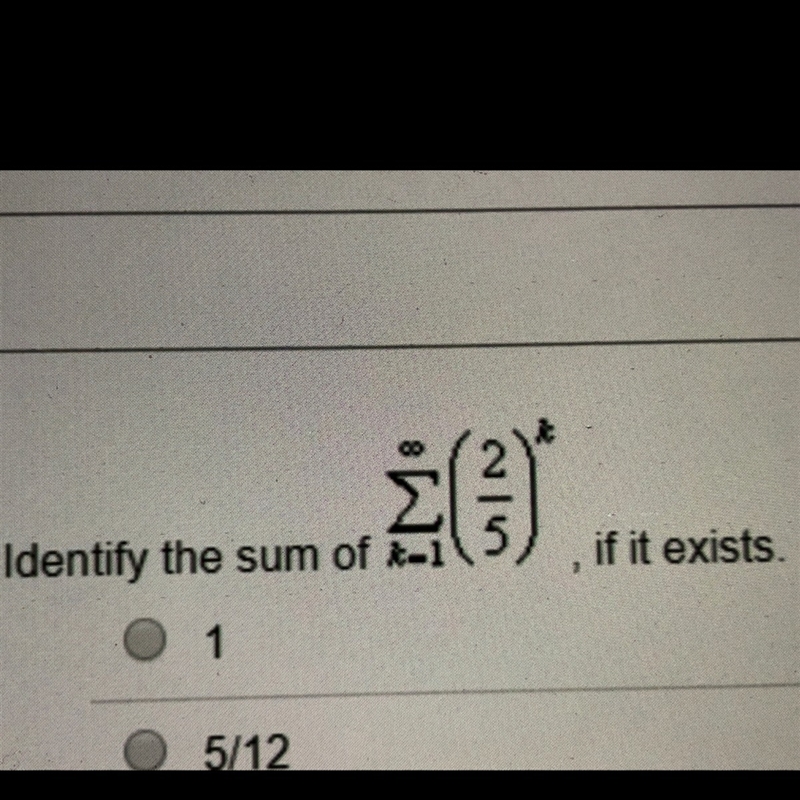 Since the ratio r=2/5 is strictly between -1 and 1 the infinite geometric series converges. The first term is also a=2/5 so the sum is
