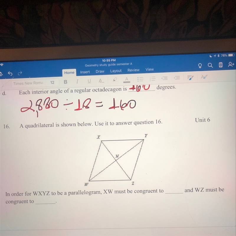 XW must be congruent to YZ as in parallelogram opposite are equal(congruent).