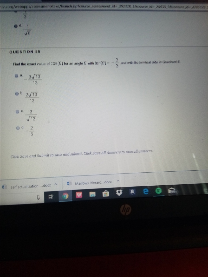 \cos\theta=(-3)/(√(13))=-(3)/(√(13))\cdot(√(13))/(√(13))=-(3√(13))/(13)