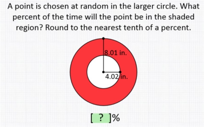 Use the geometric probability to determine the probability that randomly selected point will be in the shaded region: