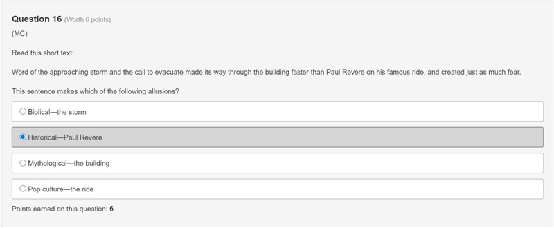 Biblical is when it relates to the bible this does not it talks about a storm and a Historical figure Paul Revere. It talks about Paul revere and his famous horse ride so its historical.